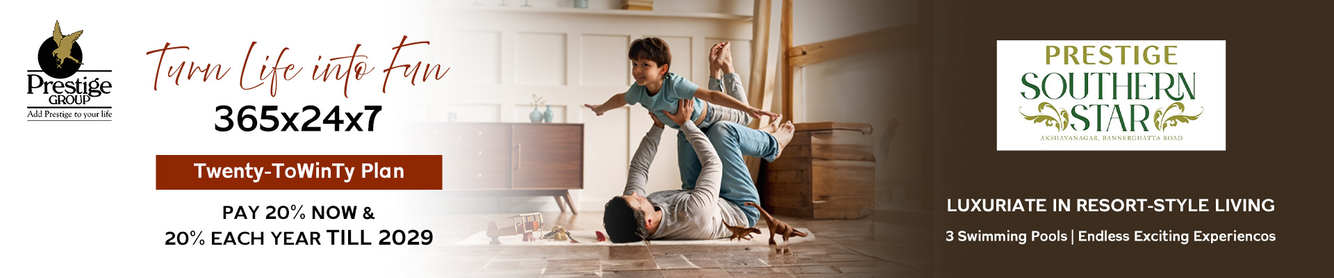 Prestige Southern Star is a premium, cutting-edge residential, mixed-use township project on Begur Road, Akshaynagar, off Bannerghatta Road, Bangalore. The total land area of the project is 34 acres.