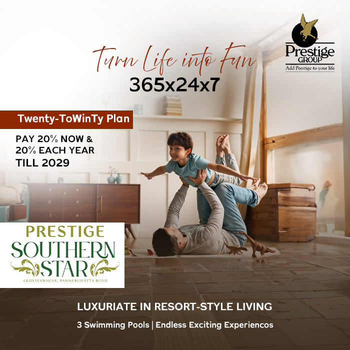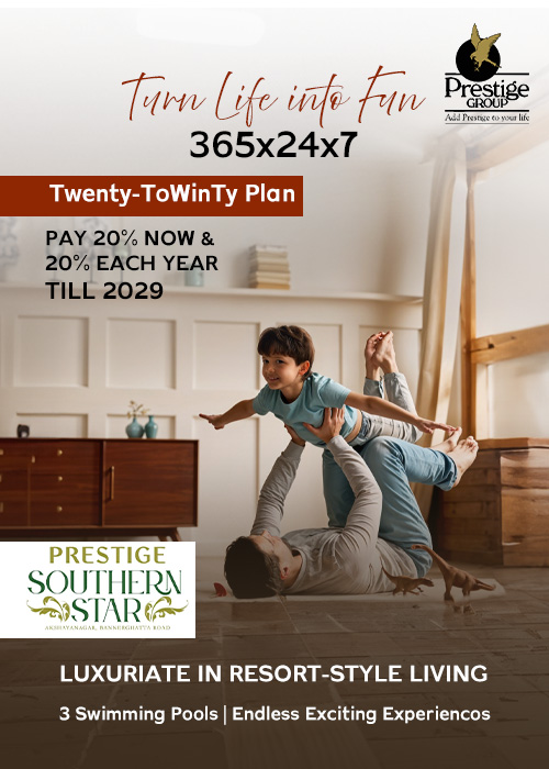 Prestige Southern Star is a premium, cutting-edge residential, mixed-use township project on Begur Road, Akshaynagar, off Bannerghatta Road, Bangalore. The total land area of the project is 34 acres.